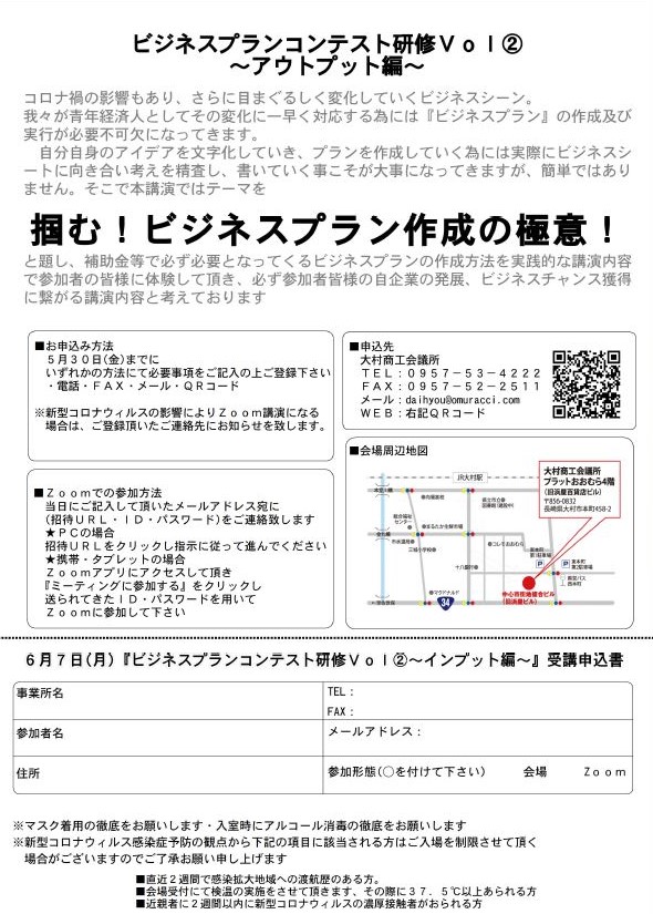 ビジネスプラン作成の講習会のお知らせ(大村商工会議所様